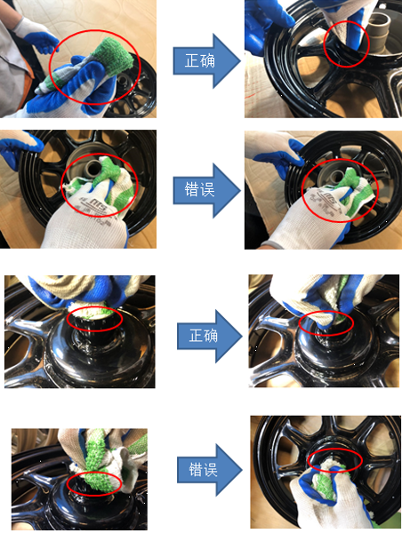 首先、朱新華主任針對8月份客戶反饋不良信息及不良圖片與在座培訓人員展開細節講解,他于會上提到:8月份特黑產品共計發貨6180只,其中不良的前輪有76只,后輪96,不良占比2.78%。上述的這些不良,都是由于我司員工在蘸取藥劑進行擦拭過程中,沒有嚴格按照作業標準及其注意點而產生的。這些不良又都是需要經過一段時間后才能顯現,所以,過程中的標準作業對于問題的杜絕顯得尤為重要。