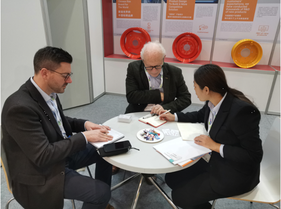 展會期間,展位參觀者絡(luò)繹不絕,公司接待了來自德國、西班牙、意大利、英國、法國、荷蘭等國家的新老客戶。我司展出的自主設(shè)計開發(fā)的滾壓鋁輪轂、高品質(zhì)農(nóng)機(jī)輪輞由于其獨(dú)特的工藝及精美的外觀,給客戶留下了深刻的印象,受到眾多海外買家的關(guān)注與青睞。通過現(xiàn)場銷售及工程人員對產(chǎn)品各類特點(diǎn)及優(yōu)勢的講解,客戶對于風(fēng)馳的產(chǎn)品有了更進(jìn)一步的了解,不僅有效的推廣了風(fēng)馳品牌,使得更多農(nóng)機(jī)領(lǐng)域經(jīng)銷商,廠商認(rèn)識風(fēng)馳的產(chǎn)品,建立合作模式。同時,借助此次機(jī)會,公司還對歐洲農(nóng)機(jī)領(lǐng)域進(jìn)行了解和分析,為進(jìn)一步擴(kuò)大歐洲市場提供指向標(biāo)。