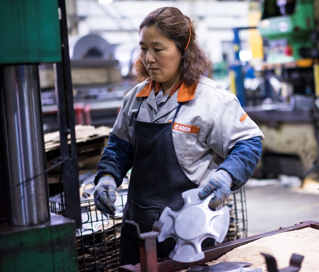 作為企業(yè)的一名普通員工,她自覺遵守各項規(guī)章制度,從不遲到早退,脫崗串崗,做到上班一分鐘,工作60秒,做到服從領(lǐng)導(dǎo),聽從指揮,團結(jié)工友,任勞任怨,全身心的投入到生產(chǎn)工作中。大家都知道打磨工序比較累也很臟,打磨的粉塵漫天飛,別人都不愿意做,但她在知道生產(chǎn)線上的打磨工有事請假后,都自己主動前往打磨工位進行打磨,以保證生產(chǎn)線正常運轉(zhuǎn)。她不僅做好自己的本職工作,而且還積極支援別的生產(chǎn)線,努力幫忙完成生產(chǎn)任務(wù)。16寸卡萊輻板線生產(chǎn)的輻板比較重,一般女員工都不愿意去做,而她聽到生產(chǎn)來不及,產(chǎn)品急等發(fā)貨,需要她前去幫忙生產(chǎn),她每次都二話不說就前去16寸卡萊輻板線進行工作。